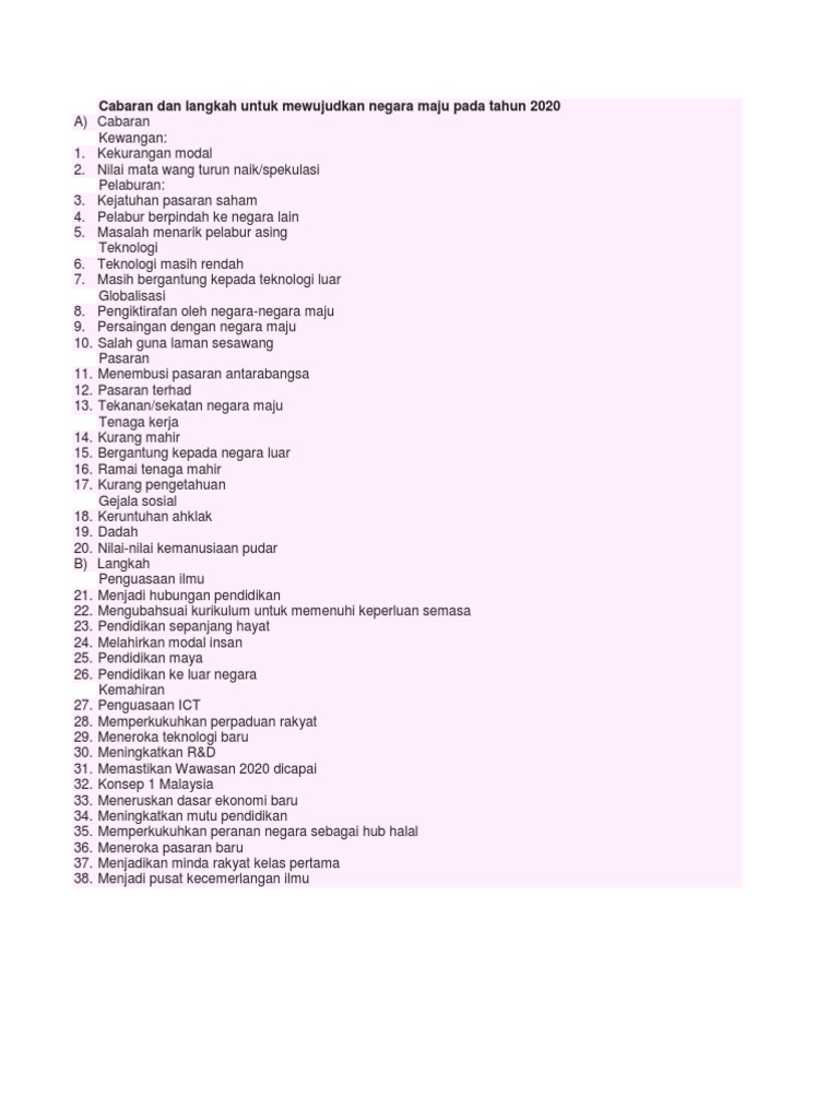 Cabaran Dan Langkah Untuk Mewujudkan Negara Maju Pada